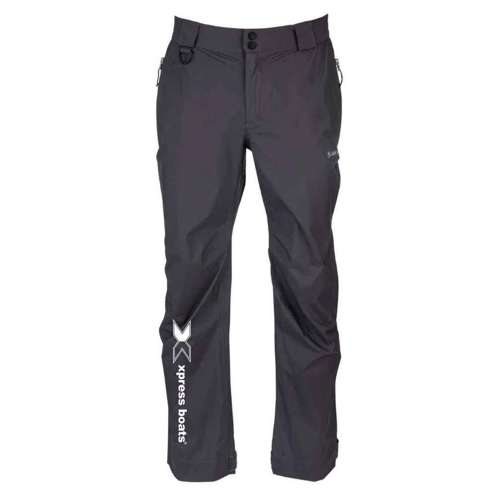 Crafted for serious anglers, the Xpress Simms M's Slate Waypoints Rain Pant offers lightweight, 2.5-layer waterproof nylon with DWR protection and mechanical stretch for unrestricted movement. The stretch waistband with zipper fly includes a D-ring for secure kill switch attachment. Side access zippers provide convenient access to inner layers, while the gusseted crotch and articulated knees enhance mobility. When not in use, the pant rolls into an elastic loop for easy packing. An adjustable hook and loop hem ensures a snug fit, keeping you dry even in heavy downpours.